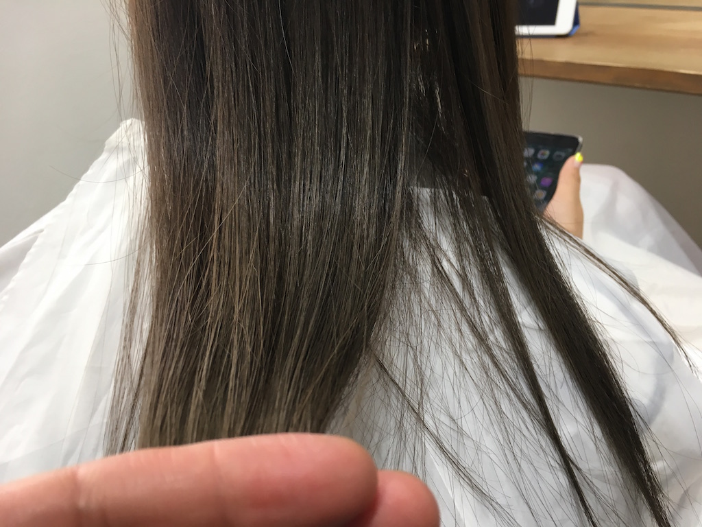 そして、本日もホリスティックヘアカラーをご所望なので、濃いめアッシュと一緒にオン!